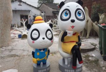 玻璃鋼熊貓卡通童趣雕塑擺件