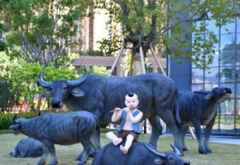 傳統民俗雕塑記錄老農生活的水牛玻璃鋼