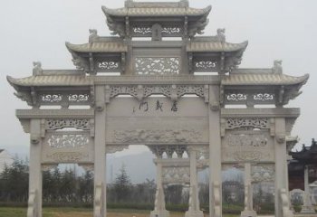 大型牌坊雕塑,往往會(huì)使人產(chǎn)生一種聯(lián)想,這座景區(qū)公園石牌坊將此區(qū)域分隔成為,內(nèi)外兩個(gè)不同的空間。從石牌坊圖片上來看,戶外大型石雕牌坊雕塑在這里構(gòu)成了,整個(gè)景區(qū)的入口前導(dǎo),擔(dān)負(fù)著引領(lǐng)整個(gè)景區(qū)主題的任務(wù)。大理石牌坊雕塑,作為分隔兩個(gè)空間的建筑單體,增強(qiáng)了空間意象的可識(shí)別性,可以使游人獲得強(qiáng)烈的場(chǎng)所感。