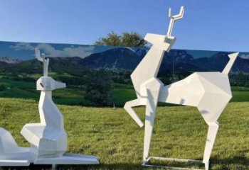 不銹鋼雕塑梅花鹿,現(xiàn)代幾何園林景觀裝飾