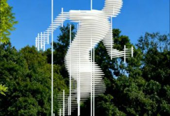 該雕塑以不銹鋼打造彩鳳凰造型,搭配螺旋狀景觀結構,色彩夢幻斑斕,在竹林背景中極具視覺張力,是創意十足的景觀不銹鋼雕塑。