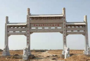 如有的牌樓上面鐫刻著大理石雕刻裝飾石柱雕塑:橫批。大理石裝飾石柱雕塑,象征吉祥如意,國泰民安,農民日子蒸蒸日上,和諧幸福。傳統大理石雕刻石柱雕塑是在我國總體上進入以工促農、以城帶鄉的發展新階段后面臨的嶄新課題,村口牌樓是時代發展和構建和諧社會的必然要求。